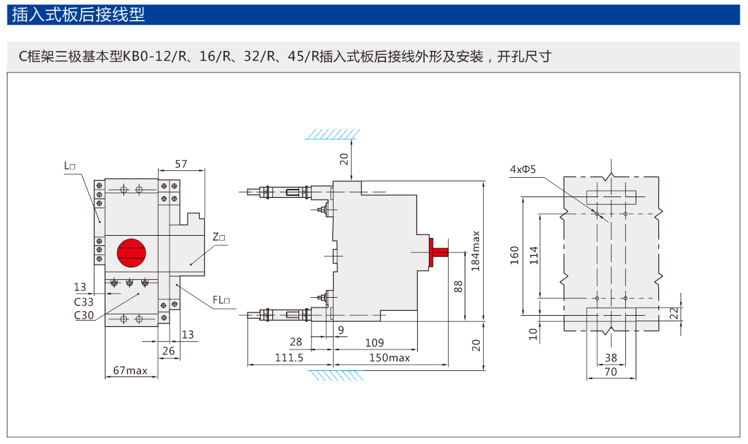以KB0作為主開關(guān),與插入式導(dǎo)柱及底座組合,構(gòu)成插入式控制與保護(hù)開關(guān)電器。