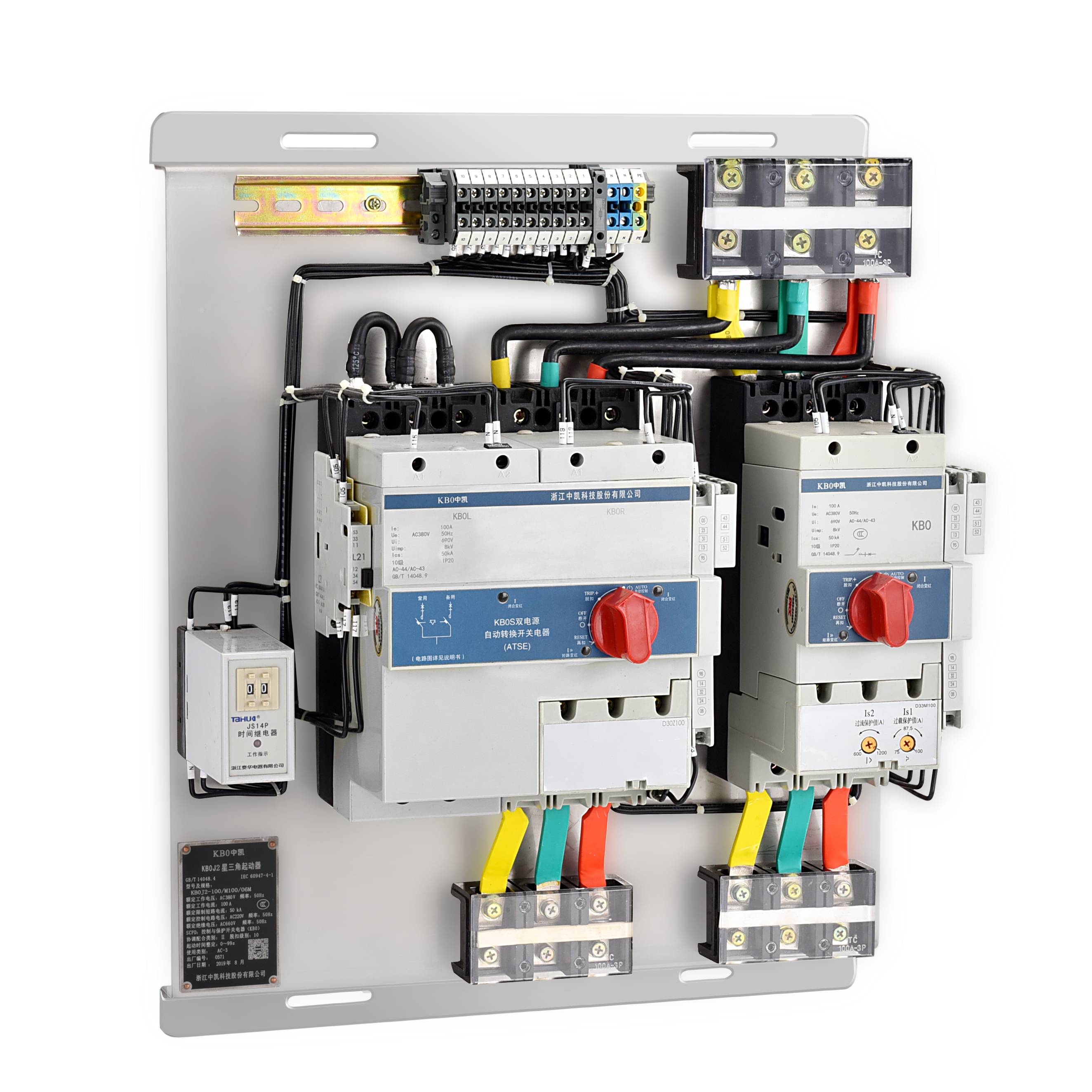 以KB0作為主開關,與適當的時間繼電器、電氣聯鎖、機械聯鎖等附件組合,構成Y-△減壓起動器成套單元KB0J2(以KB0-F消防型產品作為主開關,可構成消防型Y-△減壓起動器成套單元KB0J2-F, 具有過負荷僅報警不跳閘,短路時報警+跳閘的功能。)可實現110kW及以下的電動機的Y-△減壓起動控制與保護。