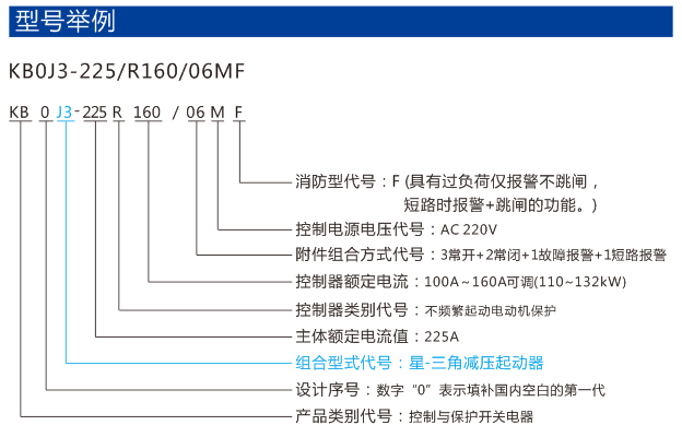 適用于電動(dòng)機(jī)星-三角減壓起動(dòng)的控制與保護(hù),以KB0產(chǎn)品作為主開關(guān),與塑殼斷路器、可逆接觸器、時(shí)間繼電器、電氣聯(lián)鎖及控制回路組合構(gòu)成星-三角減壓起動(dòng)的控制與保護(hù)裝置。
