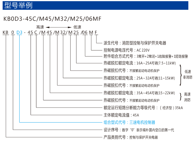 以KB0作為主開關(guān),與接觸器、電氣聯(lián)鎖等附件組合,構(gòu)成三速電動(dòng)機(jī)控制KB0D3,適用于三速電動(dòng)機(jī)的控制與保護(hù)。