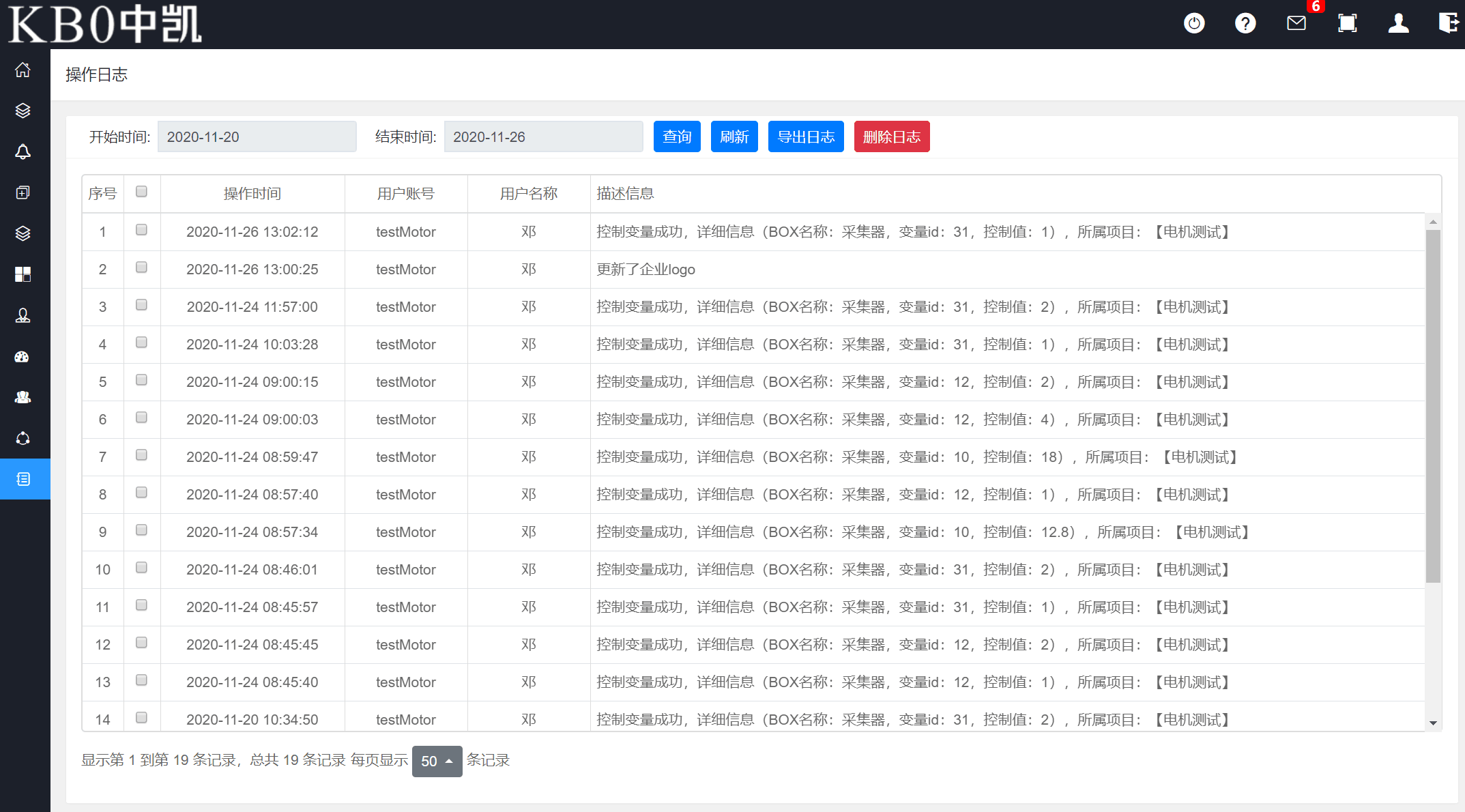 系統將各種狀態的變化和操作人員的操作活動情況記錄到日志程序中,用戶可通過日志進行維護管理
