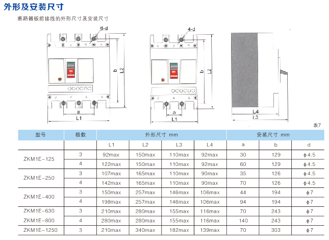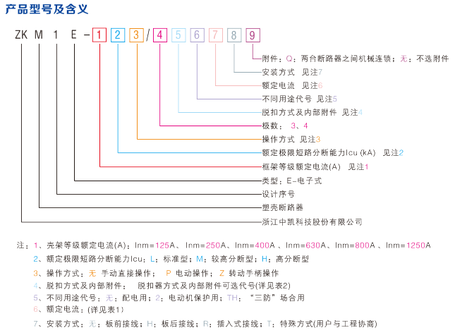 ZKM1E電子式塑殼斷路器具有三段保護動作電流、動作時間選擇。具有“預報警”指示。大電流瞬時脫扣功能,當斷路器閉合時或在運行時,遇短路大電流(≥20Inm),斷路器由電磁脫扣機構直接脫扣;安裝具有互換性,外形尺寸與ZKM1系列塑殼斷路器規(guī)格相同,按產(chǎn)品極數(shù)分為三極與四極。接線方式分為板前接線、板后接線、插入式板前接線、插入式板后接線、抽出式接線五種;斷路器分帶附件和不帶附件兩種。
